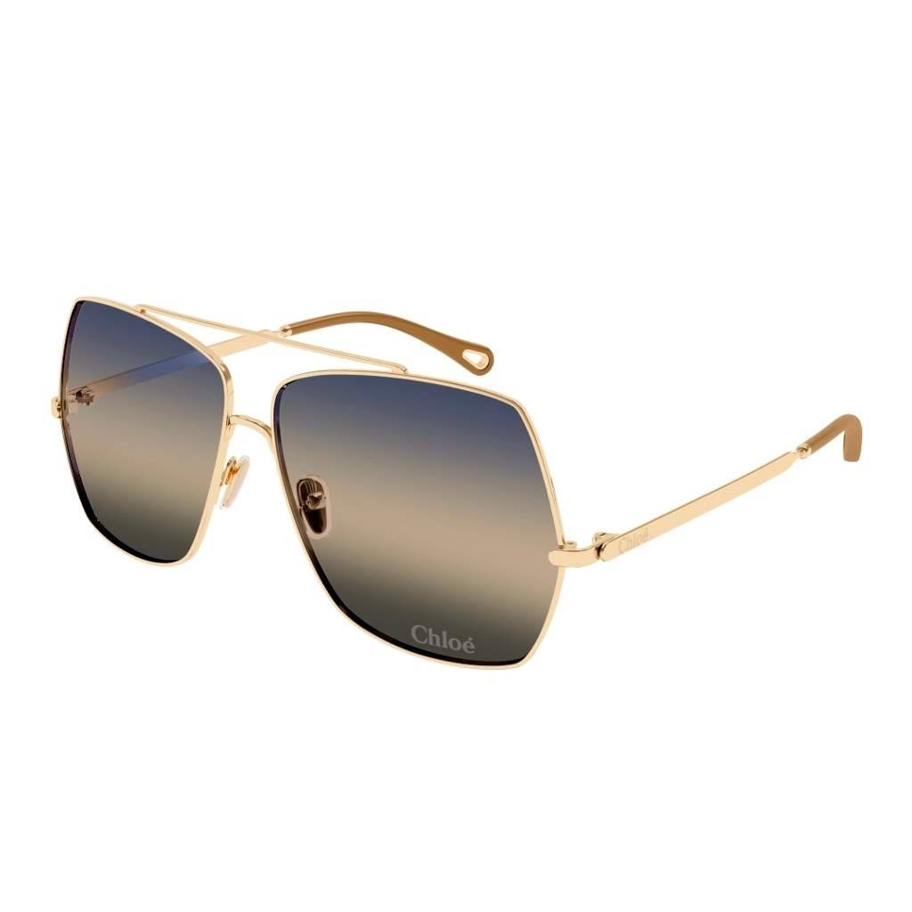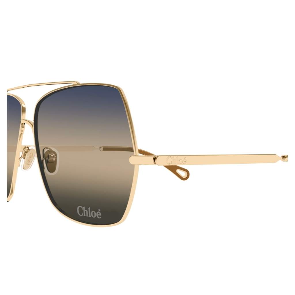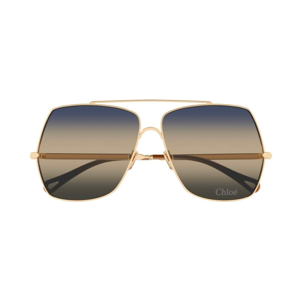 CHLOE’ CH0278s La prima linea lanciata dalla nuova direzione creativa, Aly. Montatura rettangolare con doppio ponte impreziosita dal logo Chloé inciso al laser sulla lente. Il terminale presenta l’iconico dettaglio metallico a goccia di Chloé Eyewear.
