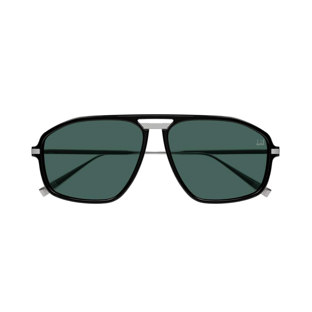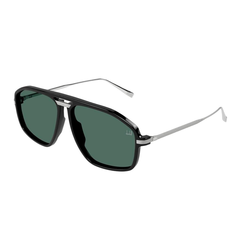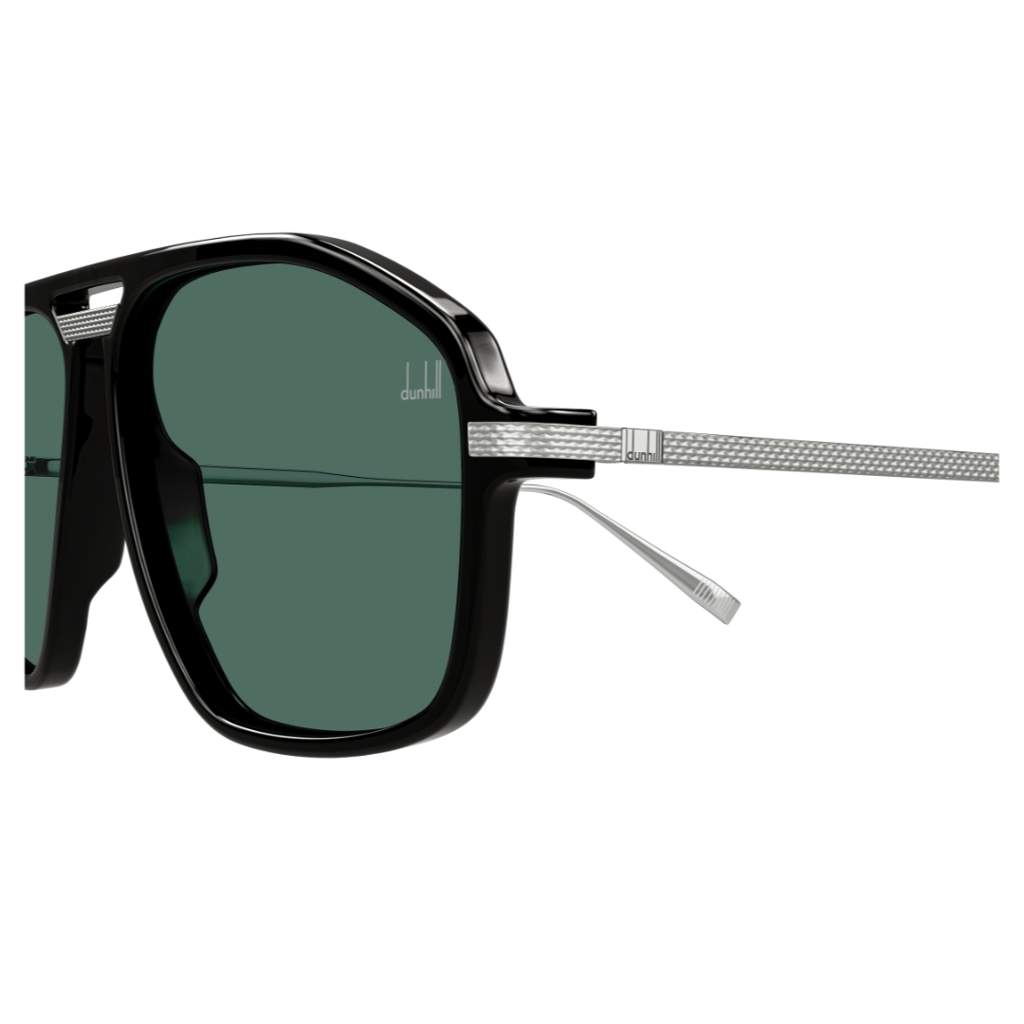 Dunhill DU0120S ampio modello pilot squadrato con frontale e aste interamente in metallo decorati con il motivo barley. ponte superiore in metallo completato da una finitura minimal ma sofisticata. Forma ampia ispirata agli anni ’80 e ’90, ma con linee nette per un’eleganza più contemporanea.