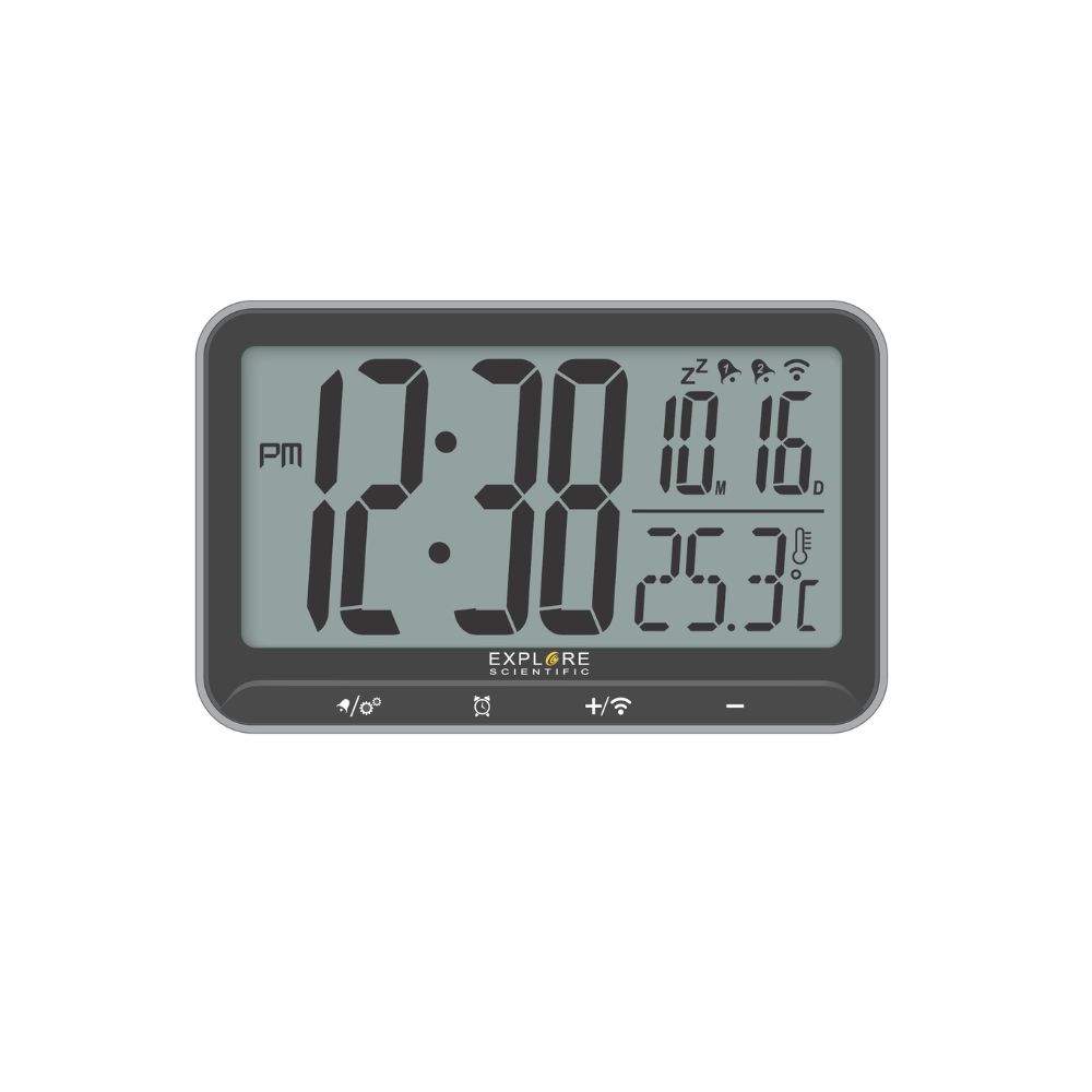 EXPLORE SCIENTIFIC Sveglia RDC1009 Design elegante, aggiornamento automatico dell’ora e sveglie indipendenti per un comfort quotidiano senza compromessi.
