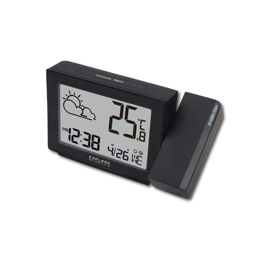 Explore Scientific SVEGLIA RPW3001 orologio a proiezione con funzione meteo: proietta l’ora sul soffitto e visualizza le previsioni del tempo in tempo reale. EXPLORE SCIENTIFIC Sveglia RPW3001 design moderno e pratico per tenere tutto sotto controllo, anche al buio.