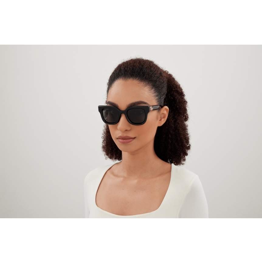Gucci GG1828s  logo running GG in metallo che abbraccia la curva della dell’asta, forma squadrata