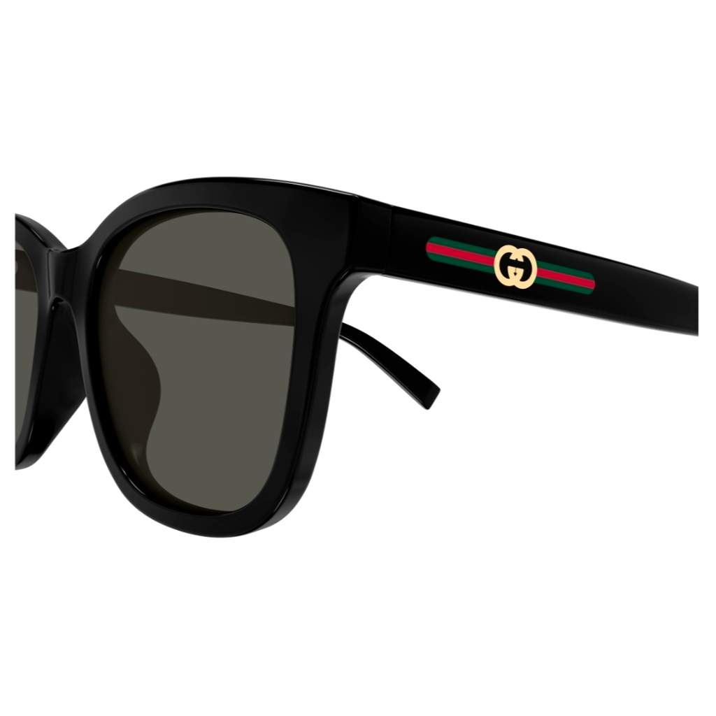 Gucci GG1984Sk Modello carry-over con un’evoluzione estremamente elegante del dettaglio Web sull’asta. Montatura cat-eye squadrata oversize. Logo Interlocking G.