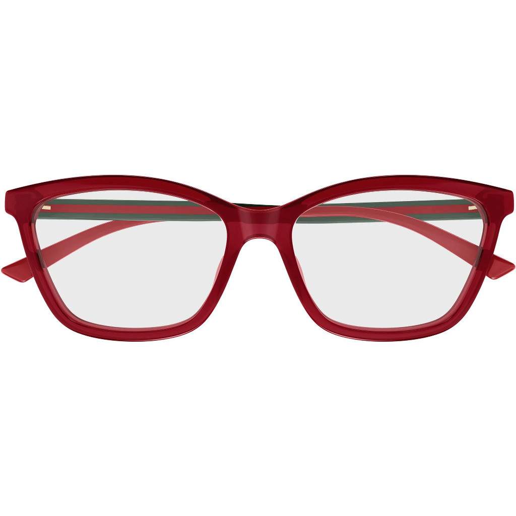 Gucci GG1989O Modello commerciale con l’iconico dettaglio Web che diventa l’asta. Morbida silhouette rettangolare cat-eye unita ad aste ultrasottili. Logo Interlocking G. Palette cromatica bicolore che abbina un frontale commerciale ad aste con strisce Web (verde-rosso-verde).