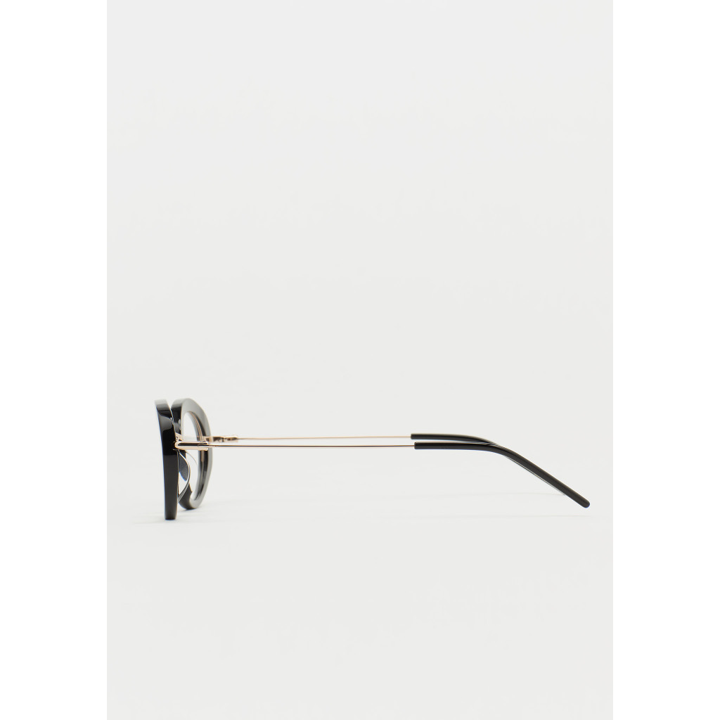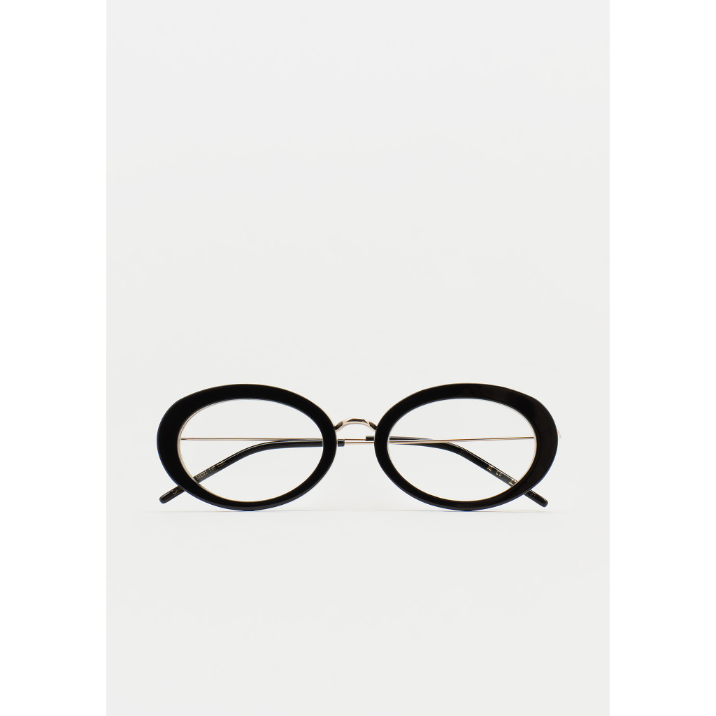 KALEOS VISTA Dannon occhiali da vista dalla forma ovale. Artigianali e contemporanei. Frontale in acetato nero. Struttura e ponte in acciaio inox dorato. Aste in acciaio inox con terminali in acetato nero. Naselli integrati in acetato. Realizzati a mano.
