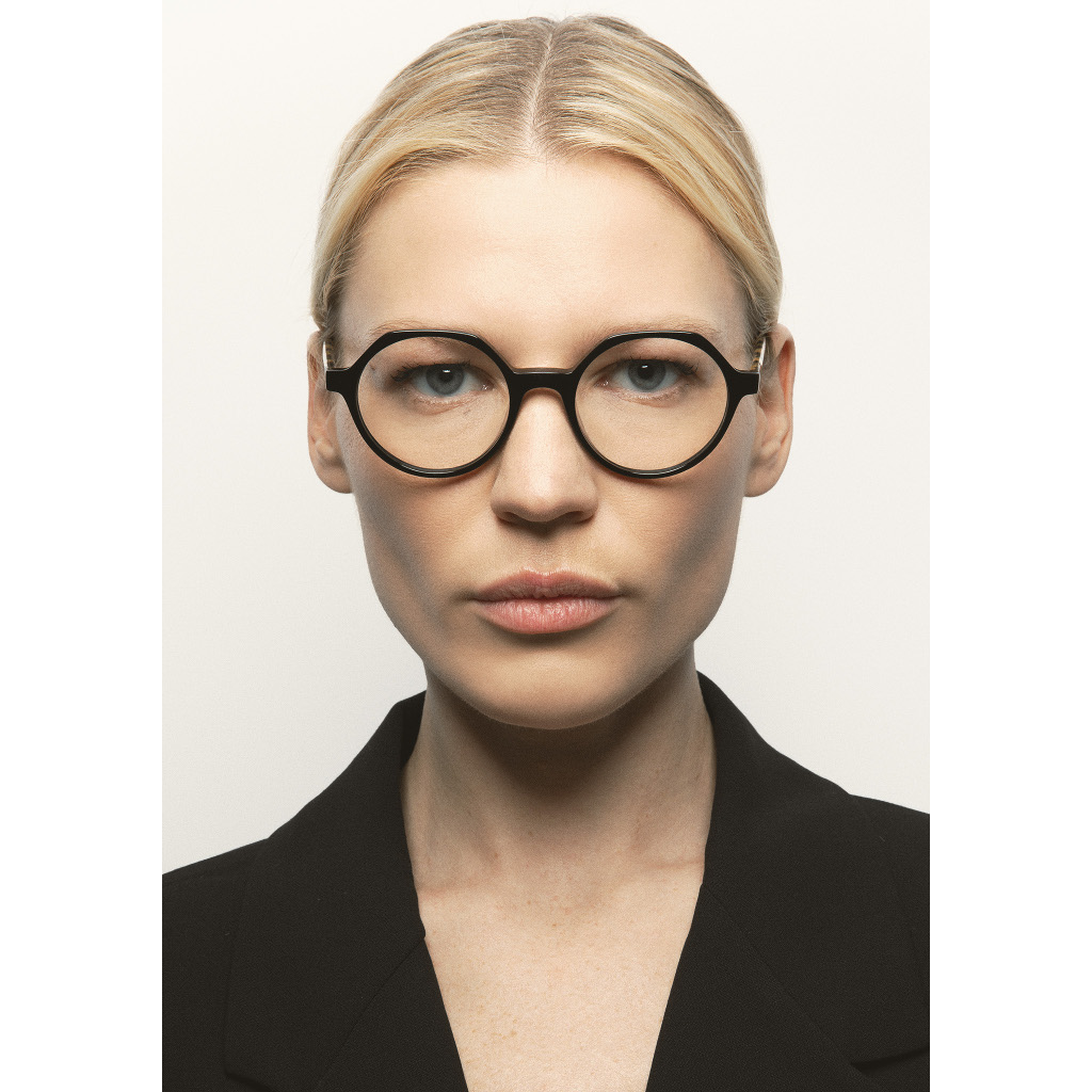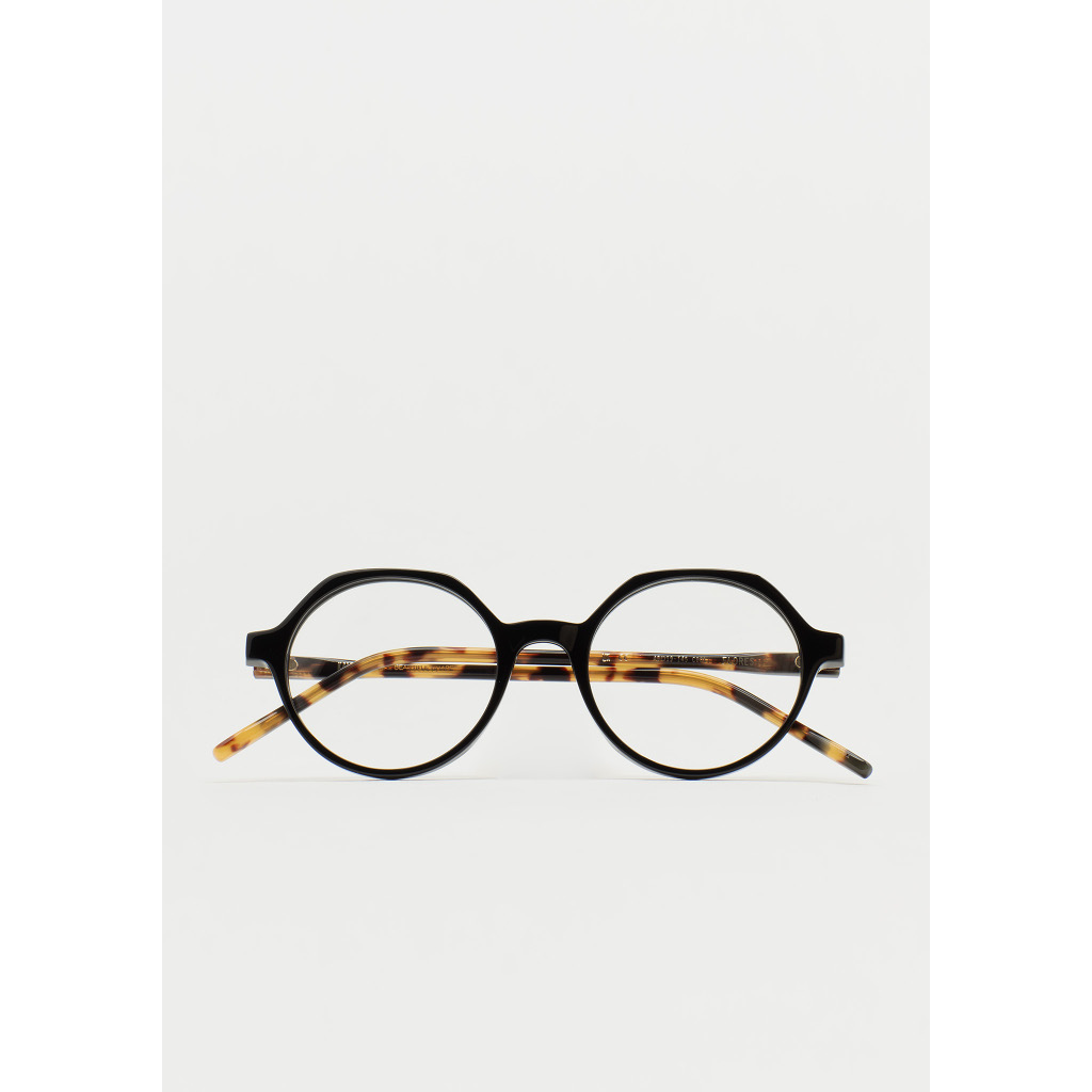 KALEOS VISTA Flores Occhiali da vista rotondi con sopracciglio piatto. Sottigliezza con carattere proprio. Frontale in acetato nero. Aste in acetato havana marrone. Naselli in acetato integrati. Realizzati a mano.
