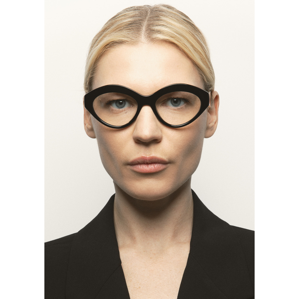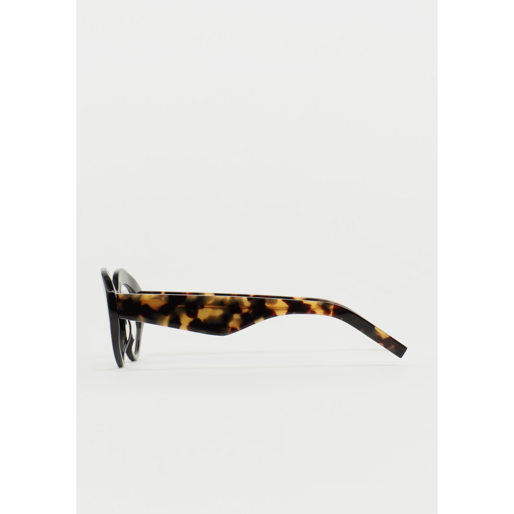 KALEOS VISTA Venit 1 Occhiali da vista cat-eye. Audace con molta personalità. Frontale in acetato nero. Aste in acetato havana marrone. Plaquettes incorporate. Fatto a mano.