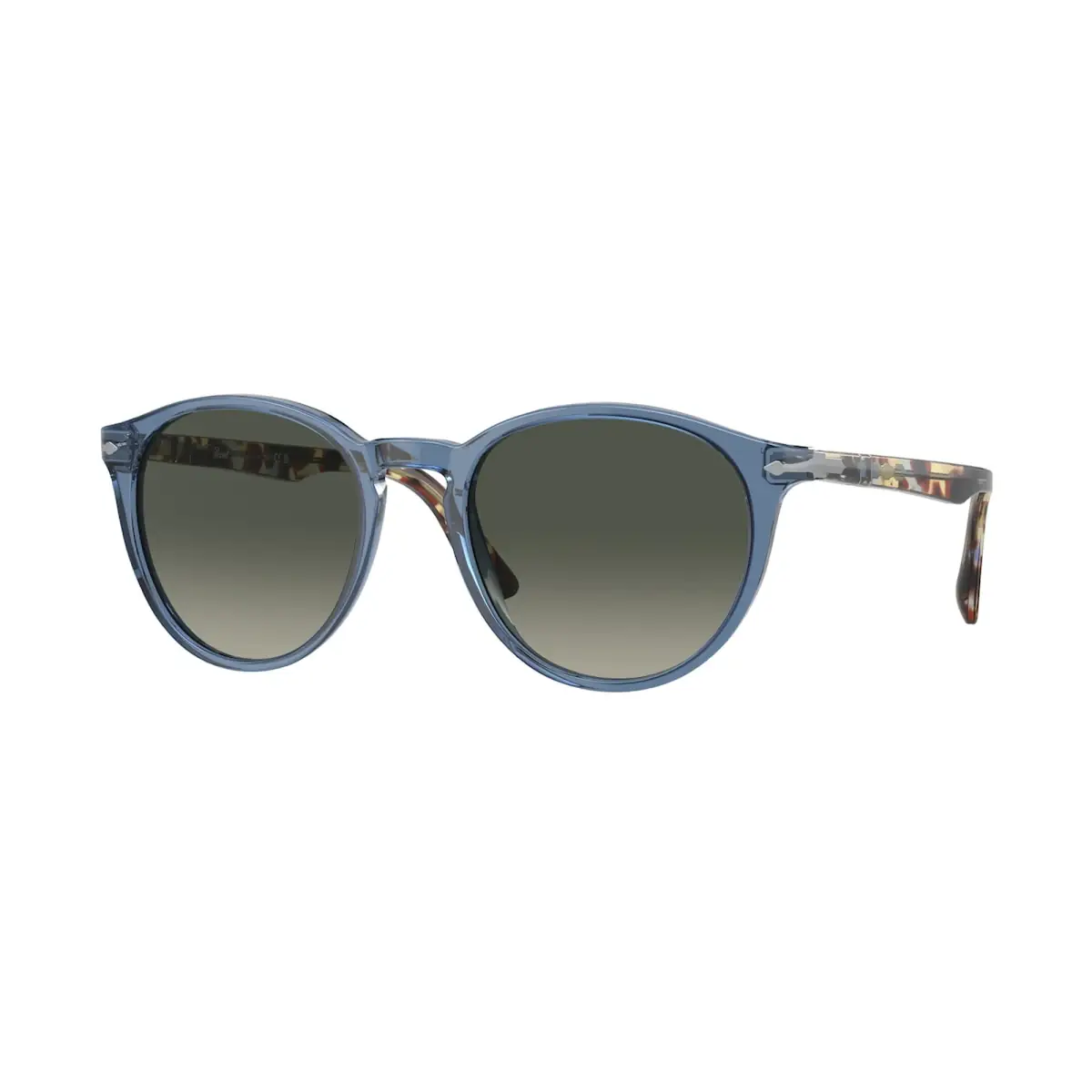 PERSOL SOLE PO3152S Occhiale disponibile in acetato di prima qualità, montatura dalla forma particolare e raffinata. Disponibile in tartarugato chiaro con lenti in cristallo azzurre con una leggera specchiatura e antiriflesso interno oppure tartarugato scuro con lenti in cristallo verdi oppure nero lucido con lentri grigie degradanti.