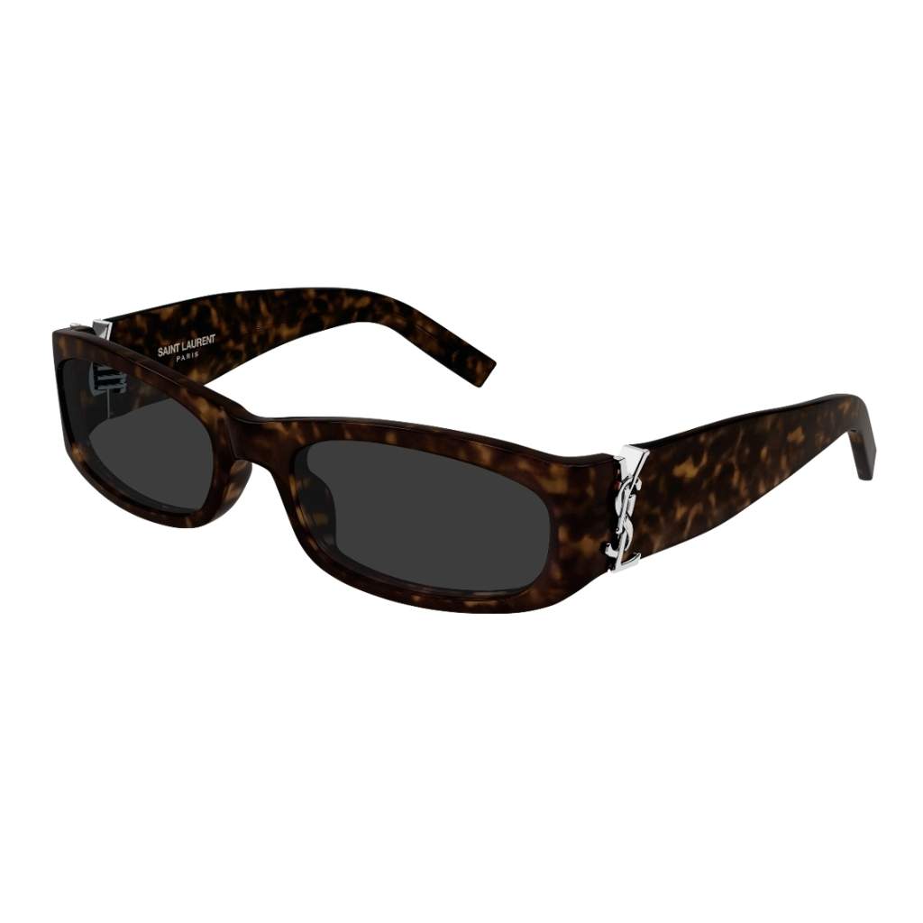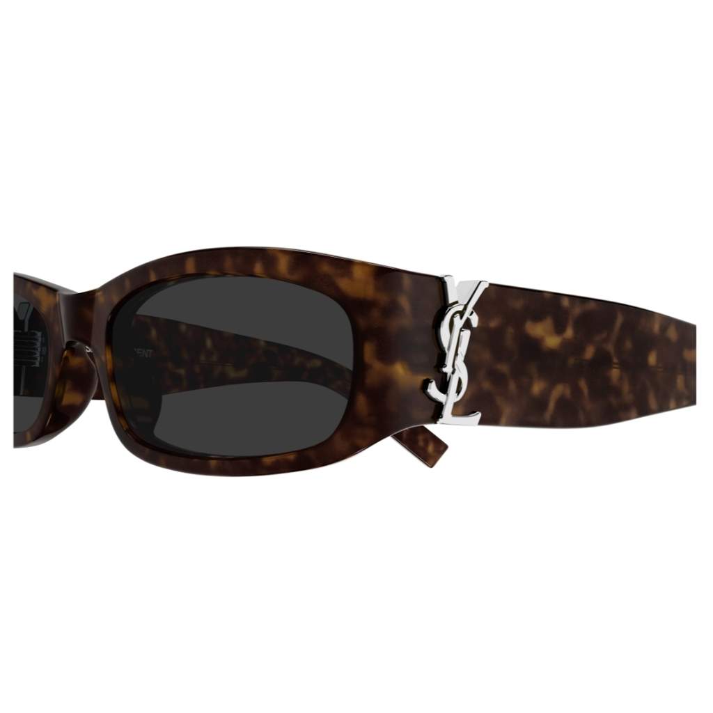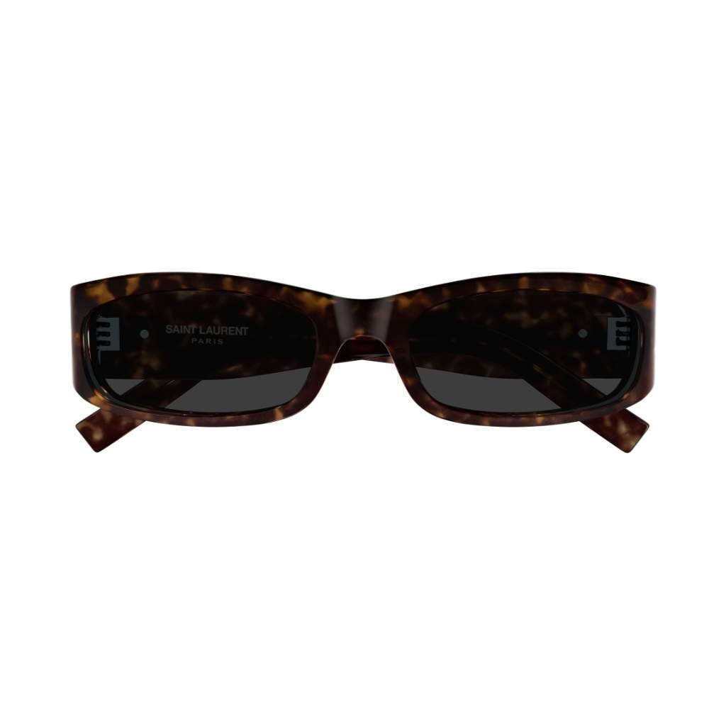 SAINT LAURENT SL M152 nuova forma monogram per la stagione. Montatura unisex in acetato dalla forma stretta e avvolgente. Maxi dettaglio monogram immediatamente riconoscibile su entrambe le cerniere.